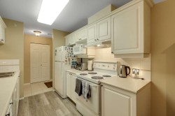 Welcome to Oak Ridge in desirable Walnut Grove! This Top-floor, Spacious 2 Bdrm. plus Den home offers a smart layout and plenty of room to live and entertain. The Galley-style Kitchen with a pantry and eating area opens to a Generous Dining rm. and Large Living rm, ideal for hosting friends and family. After dinner, relax by the Cozy Gas fireplace or step out onto the north-facing balcony and take in the Beautiful Mountain Views, perfect for your morning coffee or evening unwind. Thoughtfully designed with Bedrooms on opposite sides for added privacy, including a Huge Primary Bdrm. with a 4-piece Ensuite. The Den offers flexibility as a home office or even a small 3rd bdrm. Peaceful walking trails behind the complex & charming bridge over the creek. OPEN HOUSE THIS SATURDAY 2-4, Nov. 8th