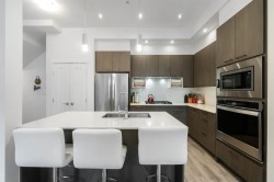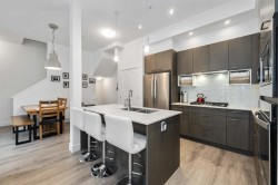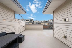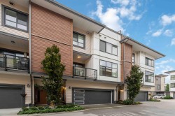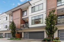 Welcome to Boulevard in Willoughby! This bright and modern 2 bedroom, 2.5 bath townhome is designed for both style and comfort. The open main floor features 10’ ceilings, oversized windows, and a chef-inspired kitchen with quartz counters, gas range, and an oversized island perfect for gatherings. Upstairs offers two generous bedrooms, including a primary with walk-in closet and ensuite. The showpiece is your private rooftop patio—ideal for BBQs, morning coffee, or relaxing evenings under the stars. Enjoy the convenience of a rare side-by-side double garage plus your own dedicated extra parking stall. Located close to schools, shops, parks, and transit with quick access to Hwy 1,this move-in ready home has it all!