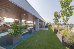 SEE VIRTUAL TOUR! Experience elevated living in Langley's Yorkson neighborhood. Welcome to the Ellery, a 2024 concrete built development by award winning developer, Isle of Mann! This top floor 2 bed, 2 bath unit features floor-to-ceiling windows w/ views from each room, designer finishes, living room feature wall, spa-inspired bathrooms, built in cabinetry, and AC throughout. Open concept kitchen w/ island, quartz counters, gas range, 2 toned cabinets/drawers, s/s appliances, wide plank flooring. Extend your living space on the rooftop deck complete w/ covered sitting area, kids play area and garden plots. Unit comes w/ 1 EV parking stall and large Bike and Storage Lockers. Don’t miss your chance to see this unit in person and what sets it apart! Call today!