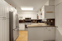 Nestled on a quiet cul-de-sac, this 2-level basement home offers 2,000+ sqft of living space on a massive 11,968 sqft west-facing lot. The fully fenced yard features a large 12x17 shed and covered back deck, hot tub and serene koi pond—perfect for outdoor living. Upstairs includes a great room layout with kitchen updated appliances, dining, and 3 bedrooms (primary with 2-pc ensuite). Downstairs offers a flexible layout with family room, 1 bedroom, full bath, and summer kitchen—ideal for extended family or rental potential. Hot water 2020 Furnace refurbished 2018 new gutters downspout and facia 2025 In excellent condition with a highly desirable location and lot. Book your private tour today!
