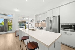 Located in the heart of Willoughby, this 2 bed, 2 bath townhouse features an incredible 500 SF private rooftop patio with gas and TV hookups—perfect for entertaining, relaxing, or soaking up the sun! It offers a bright open concept layout, stainless steel appliances, a spacious kitchen with ample storage, and large windows for great natural light. The primary bedroom includes a walk-in closet and private ensuite. Both bedrooms are generously sized. Single car garage plus covered carport—2 parking total. One of the best locations in the complex with no neighbour in front. Close to schools, Willoughby Town Centre, Costco, T&T, restaurants, and Hwy 1. OPEN HOUSE: Sunday Dec 14th 2-3pm!