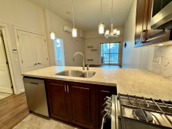 **PENTHOUSE w/ 13FT CEILINGS facing WEST built by QUADRA in the luxurious YORKSON PARK complex** Step into luxury living with our exquisite one-bed, one-bath residence spanning 771 sqft, complete with a spacious 82 sqft retractable glass panel solarium/deck. Indulge in top-of-the-line appliances, sleek quartz countertops, and the comfort of heated flooring in the bathroom. Entertain effortlessly with a natural gas line on the patio and relish in the convenience of built-in AC. 2 parking spots with pullup storage locker at end of spot & EV charger included! Nestled in a prime location, enjoy proximity to schools, shopping, transit, and easy highway access!