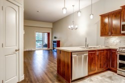 YORKSON PARK! TOP PENTHOUSE/ Unobstructed stunning MOUNTAIN VIEW! VIEW! / 12ft high ceiling/ / Total 880 sf - JR 2 BED + 1 BATH, Mountain view facing all year-round usable solarium w/ gas BBQ hook-up (Gas included in strata fee), Energy efficient heat pump / A/C in living room + bedroom, High-end Samsung appliances (including Samsung 5 burner gas cooktop) & quartz countertops. Heated flooring & anti-fog mirrors in the bathroom, Extra corner pantry, Solid wood closets and doors throughout, European laminate flooring throughout, 2 parkings + huge rolling door storage, Amazing location - 1.3 acre city park & right across from Calvoth Park & Ride, Hybrid building (wood + concrete), Sound -dampening insulation flooring.