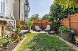 LOCATION! ACROSS FROM RC GARNET PARK; KIDS WALK TO SCHOOL! Welcoming veranda invites you into Open & bright 5 bedroom, 4 bath home. Living area includes flexible living/dining rooms & open kitchen/family room space w/overheight ceilings, true hardwood floors & gas fireplace. Main floor access onto sundeck overlooks fenced yard, gardens & patio. Commercial grade awning allows cover when wanted! Primary bedroom feat. vaulted ceiling, space for King bed, ensuite w/dbl sinks, sep shower, soaker tub + walk-in closet. Generous sized rooms- teenagers will appreciate the space. Full basement w/sink, full finished bath & 2 bedrooms. Separate entry. No suite, but suite-able. NEW ROOF JULY 2025, GUTTERS REPLACED SEPT. 2025. PERFECT LOCALE FOR DAYCARE!!