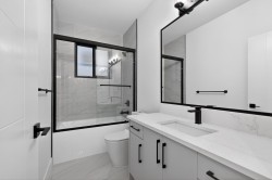 NO STRATA FEES! Brand new 3-level 1/2 duplex on a back lane lot in the desirable Latimer / Willoughby Heights area of Langley. Offering 2,775 sq ft of living space with 5 bedrooms, 3 full bathrooms, and 2 half bathrooms, including a 2-bedroom suite with separate entrance. Main floor features an open-concept living and dining area, kitchen with stainless steel appliances, and a bedroom/den with a powder room. Upper level includes a primary bedroom with ensuite, two additional bedrooms, an additional full bathroom, and laundry. Appliances installed and move-in ready. Close to schools, shopping, transit, and Langley Events Centre. Includes 2-5-10 New Home Warranty.