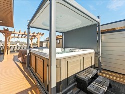 Location! Location! Location! Exceptional 4 bdrm, 5 bth t/h END UNIT spanning 3400sf & packed with luxury. A PRIVATE ELEVATOR provides access from the basement to the exclusive roof deck. The main level offers a chef's kitchen with Miele & Bosch appl & quartz counters. Entertain indoors & out with a Lumon-enclosed balcony & 700+ sqft roof deck complete with hot-tub, gas fireplace, pergola, gas BBQ & bar sink. Enjoy full smart-home automation, heated bth floors, motorized blinds, high-efficiency furnace, heat pump AC, solid core doors, custom closets, built-ins & designer lighting thru out. EV charger plus parking for 4. Ideally positioned in the prime spot of the complex with quick access to Hwy 1. Quiet, private, one-of-a-kind, too many luxuries to list here - book your private appt!