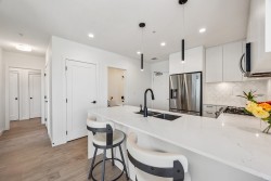 Welcome to this stunning 2 bed, 2 bath upper-level corner unit in Latimer Heights by Vesta Properties! Built in 2021, this bright and airy home features a chef’s dream kitchen with an upgraded appliance package, spacious layout, and large windows that fill the space with natural light. Enjoy two private patios with breathtaking city and mountain views—perfect for relaxing or entertaining. Bonus: two secured parking stalls, a rare find in Willoughby Heights. Located just minutes to top-rated schools, shopping, parks, Carvolth Exchange, and Hwy 1, this home truly has it all. Open House November 23 from 1-3pm!