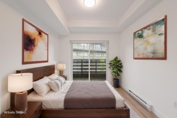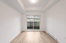 Welcome to this spacious one-bedroom home at Sierra Ridge! This adaptable ground-floor suite is designed for easy wheelchair accessibility. It features upgraded stainless steel KitchenAid appliances, waterfall stone countertops, modern bathrooms, and 9-foot ceilings. Centrally located, it’s just steps from shops, restaurants, breweries, amenities, and the West Coast Express. Relax at the rooftop amenity lounge, complete with gas fire pits, BBQ facilities, and beautifully landscaped spaces offering stunning views of the Fraser River and Mount Baker. Enjoy nearby world-class parks and outdoor recreation. Experience natural living with an urban edge. Includes two parking spots and one storage locker. OPEN HOUSE NOV 01 SAT 2-4PM