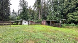 ONE ACRE COZY HOME ENDLESS POTENTIAL! This Maple Ridge gem sits on a rare one-acre lot, boasting incredible potential. New partially renovated, this single-family home shines with a cozy living area featuring an electric fireplace set in stone tile, stylish new vinyl plank flooring, and two bedrooms with plush new carpet. A full bathroom overhaul, fresh paint, and new windows throughout enhance the charm. Plus, with doing upgrades to the horse stalls and three grazing paddocks, it offers endless possibilities for rural living.