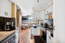 Spacious and updated 3,000 sq ft, 5-bedroom, 3-bath home on an oversized lot with stunning views of Golden Ears. The main level offers a generous primary suite with gas fireplace, two additional large bedrooms, and bright living and dining areas featuring a striking river rock fireplace and floor-to-ceiling windows. The kitchen opens to a deck, perfect for year-round entertaining. Downstairs includes a bright two-bedroom suite with separate laundry, gas fireplace, and private patio—ideal for extended family or rental income. Features include vinyl windows, central A/C, and a Bosch tankless hot water system. The expansive lot offers room for RVs, toys, gardening, or future plans. Steps to transit, shopping, and Harry Hooge Elementary.
