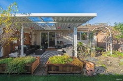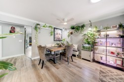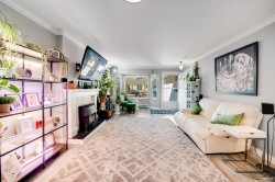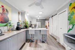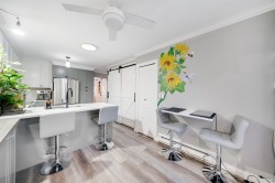 "THE BOARDWALK" 55+ COMMUNITY Tucked away is this 20 unit complex of RANCHER style townhomes perfect for the downsizer seeking 1 level living with a small YARD, attached single GARAGE, in a private, friendly, neighbourly enclave. This home offers 2bdrms (2nd bedroom has 3 closets & SKYLIGHT) two recently updated Bathrooms & long garage with workshop. The interior has been elegantly UPDATED with CUSTOM CABINETRY in the Kitchen & both Bathrooms as well as New Countertops & Lighting. Living room has a WEST facing BAY WINDOW & GAS F/P and a adjoining Dining room w/"Sky Tunnel". Kitchen has an eating bar, lots of Cabinets/Counters/Pantry w/pull out shelves & 2 "Lazy Susan's". Family room w/sliders to large Covered Private Patio and Yard. Luxury Vinyl Flooring throughout .