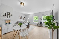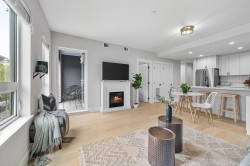 Experience modern urban living in this bright and spacious 1-bedroom + den home, offering 655 sq.ft. of thoughtfully designed interior space in the heart of Maple Ridge. Features wide-plank engineered hardwood floors, large windows, and a modern kitchen with full-size KitchenAid appliances, quartz countertops, and a breakfast bar. Stay comfortable year-round with AC and heating via an energy-efficient heat pump. Includes 1 parking stall and 1 storage locker. Pet-friendly building with premium amenities: Rooftop garden and kitchen/lounge for entertaining, a fully-equipped gym, landscaped courtyard, and kids play area. Steps from cafés, shops, parks, and Maple Ridge Leisure Centre.