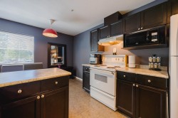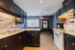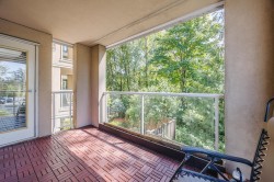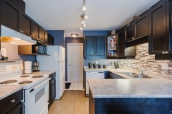 Set back peacefully from any major road down a panhandle driveway, this large & bright condo awaits you. Offering a private view deck overlooking a tranquil ravine & protected greenspace. Singing birds are your most prominent neighbor. Walk in from street level, perfect for those who don't want to use stairs or an elevator but rises above the green space below. An abundance of in-suite storage with the many closets & walk-in laundry storage room. Cozy up to the gas fireplace that heats the entire home. Strata fees cover water, sewer, natural gas heat, management, garbage, snow removal. 853 sq ft spacious living. 1 parking. Walk to groceries, shopping, eateries, entertainment, trails & more. Quick possession available. Nicely updated. 2 pets, 20 lbs max. HUGE CRF. O/H SUN NOV 30 (12-1pm)