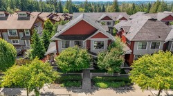 Stunning Silver Valley DUPLEX STYLE END UNIT TOWNHOME w/DOUBLE SIDE BY SIDE GARAGE + DRIVEWAY!!! Privately located on the outside of this family oriented development, this 3 bed home has open main floor w/large living area, fireplace w/stone surround, dining area w/custom storage, powder room, kitchen w/quartz counters, s/s appliances, breakfast bar + bonus office nook leading to massive sundeck, perfect for BBQs & wine nights! Main flr has fenced front yard w/access to street parking. Upper level has primary bedroom w/vaulted ceiling, walk thru closet w/custom organizers & personal ensuite. Additional bedrooms are great sized & have use of 2nd bathroom. BONUSES: BRAND NEW CARPET Bedrooms, Hallways & Stairs, balance of warranty, STEPS TO: Transit, trails, Maple Ridge Park, Alouette River!