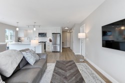 This like-new, 3rd-floor corner unit at Edge on Edge II offers over 900 sq ft of modern living with breathtaking views of the Golden Ears Mountains. Built in 2018, this 2 bed, 2 full bath home was substantially rebuilt in 2025, providing a pristine, move-in-ready space. Its prime location is a walker's paradise, steps from shopping, dining, and essential healthcare. Enjoy an active lifestyle with the Leisure Centre, parks, and schools all within close proximity. Commuting is a breeze with easy access to the West Coast Express and public transit. Experience urban convenience and natural beauty right at your doorstep.