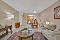 Beautifully updated and meticulously maintained, this bright ground level 2-bedroom, 1-bath townhouse offers an open floor plan, neutral colours, and modern finishes throughout. Enjoy a renovated bathroom with a walk-in shower, new appliances, and easy-care vinyl plank flooring. The enclosed patio features privacy-film windows—allowing you to see out while keeping the inside private. This well-run complex offers an amenity room with full kitchen, workshop, community garden, and raised beds. A wonderful and affordable place to retire.