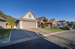 Welcome to this beautiful bungalow rancher with a loft, perfectly tucked near Sandpiper Golf Course and just a short drive to Harrison Hot Springs, Mission, or Chilliwack. This home offers 2 bedrooms plus a bright loft that makes a wonderful 3rd room, and a primary suite with an ensuite featuring both bath and shower. Enjoy morning coffee or evening relaxation on one of two decks while taking in the stunning mountain views. The yard is low-maintenance but spacious enough for all your outdoor needs. With Sasquatch Mountain close by for skiing in winter or hiking in summer, this home is ideal for families, adventure lovers, or anyone looking to retire in peace and comfort. A perfect blend of tranquility, style, and lifestyle, truly a dream home.