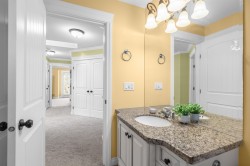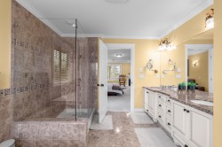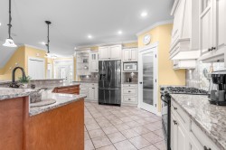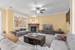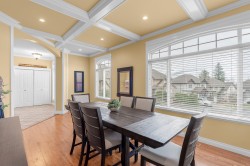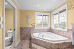 Exquisite 4BR & 3.5 bath home in prestigious gated community of Abbey Meadows. Large 3,220sf home w/ greenbelt views, quality finishes, Geothermal heating & AC. Main fl features large dining rm (or living rm) w/ electric FP & coffered ceiling, bright open kitchen w/custom cabinetry, granite countertops, gas stove, large island & walk-in pantry, great rm w/ gas FP & French doors to covered patio. Upper fl huge primary BR w/ walk-in closet, electric FP & luxury 5pcs ensuite bath, 2 good size BR, full bath &laundry. 4th BR/flex rm & full bath on bsmt. Gas hook up for BBQ & fire pit on patio. Oversized double garage w/ storage/workshop. Fully fenced back yard backing to greenbelt. Wonderful safe neighbourhood, 40 executive homes & playground in the complex. OPEN HOUSE Sat Jan 17, 2-4pm