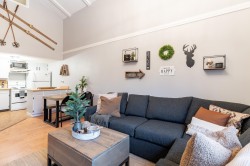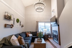 Huge, renovated, fully furnished, everything included! Sleeps 10. Spacious primary bdrm, plus 2 lofts and a den. A large kitchen on the main floor, plus a smaller kitchen upstairs. This unit can be split into 2 separate units, with a locking door between the units. Both units have a door into the common hallway. 2 kitchens, 2 bathrooms, a wood fireplace, and a beautiful view overlooking the mountains. Easy access to the unit, directly across the hall from the underground parking stall. Located at the base of the Sasquatch Triple Chair, as a ski in/ski out. Enjoy year-round activities, with tubing, skiing, mountain biking, golfing, and fishing. Walk to Molly Hogan's pub for a pint and dinner. Gather around the fire, unwind by the sunset, dip in the pool or relax in the hot tub or sauna.