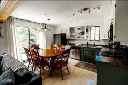 Hemlock Hideaway! Fully furnished, turn-key 3 bed, 2 bath NO STRATA corner cabin in a freehold fourplex. Recently renovated with new floors, paint, washer/dryer, gas fireplace, skylights, metal roof, updated drainage and structure. Private sauna, hot-tub-ready deck, ample parking, and low property taxes. Ideal for full-time living or Airbnb. Prime village location steps to the slopes and general store. Sasquatch Mountain offers year-round recreation with skiing, hiking, ATV riding, disc golf, outdoor park and future bike trails.