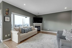 Spectacular views from this 5 bed, 3 bath home with 2 bedroom suite in great area close to schools. Open design with large kitchen featuring Bosch S.S. appliances and large island. Open layout with views out large windows to valley below. 3 large bedrooms up with rec room in basement. Newer furnace with air conditioning provides comfort in summer months. Above ground suite with tons of light. Feel safe with built in security. Large fenced corner lot with built in irrigation and 2 yard sheds. Pride of Ownership shows. Open house Sunday Jan. 18 1-4pm.