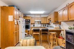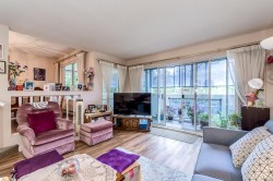 Located in a quiet, gated, 55+ adult-oriented complex at the end of a cul-de-sac. This ground floor entry end unit is spacious and bright with 3 bedrooms, 2 bathrooms, and over 1,400 sqft of living space. Huge oak kitchen with wall oven, stove top, breakfast bar, lots of cupboards, and open eating area. Formal dining room next to sunken living room with access to large solarium sundeck with southern view. Primary bedroom with walk-through closet and private 3 piece ensuite. 2 additional good size bedrooms, 4 piece main bath, and huge laundry room. Well maintained building with lush gardens. Walking distance of shopping, transit, and amenities. Bonus 2 parking - 1 open and 1 private garage, roof replaced in 2021.