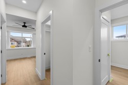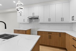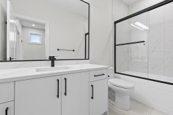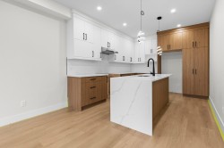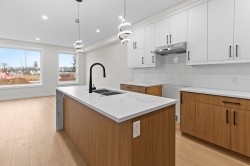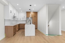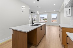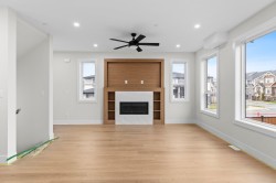 3 level 1/2 duplex with above ground 1 bedroom suite! Main floor enjoys Primary bedroom with walk-in closet and tiled ensuite, modern kitchen with sleek flat panel cabinetry, quartz countertops, centre island, spacious great room area with stunning fireplace! Top floor provides 2 bedrooms , full bathroom and laundry. Basement is fully finished with bedroom, bathroom, laundry, kitchen and living room! 2 car garage , heat pump, long life metal roof, better choice than a townhome with no bylaws, rules or strata fees, call today!