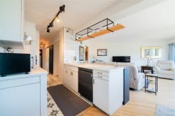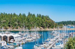 Welcome to your dream coastal retreat! This stunning three-bedroom condo boasts sweeping ocean views of the marina, yacht club, and charming Protection Island. Inside, you’ll love the open-concept layout, gleaming hardwood floors, and stylish modern touches throughout. The beautifully updated kitchen features a sleek wall oven, smooth cooktop, and a casual eating bar—perfect for morning coffee or evening entertaining. Step out onto the covered deck from the living room and soak in the vibrant waterfront atmosphere year-round. The spacious primary suite offers room for a king-size bed, plus dual closets for all your storage needs. A well-appointed four-piece bathroom and a versatile storage room—with potential for future in-unit laundry—complete the package. Located in a prime spot with the waterfront walkway just outside your door, this 55+ community offers a carefree lifestyle where heat and hot water are included in the strata fee. (Please note: no pets.)