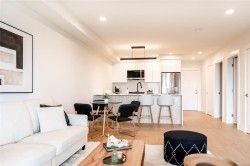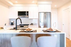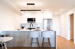 Welcome to Lumina, in the heart of Nanaimo’s Harbourview District — a Principal Property community where modern living meets coastal charm. Just steps from the harbourfront, seawall, cafés, shops, parks, and the Hullo Ferries, Lumina places you at the center of a vibrant, evolving neighborhood. This lovely residence offers a refined blend of style and comfort, featuring bright open-concept living, high-end finishes, and a spacious balcony with sweeping city and harbour views. Every element — from the quartz waterfall countertops and smart appliances to the soft-close cabinetry — reflects thoughtful design and attention to detail. Residents also enjoy access to Lumina’s stunning rooftop terrace — an elevated retreat with panoramic harbour and mountain views, perfect for morning coffee or sunset gatherings. Blending the best of coastal urban living, this home is more than a place to live, it’s a front-row seat to downtown Nanaimo’s vibrant future.