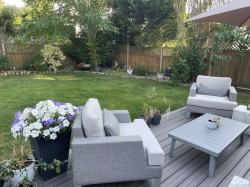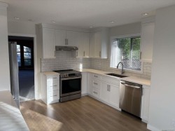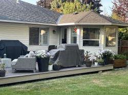 Well-maintained 1,483 sq ft rancher situated on a private 6,706 sq ft lot in sought-after Parkwood. This move-in ready home features a fully updated 2025 kitchen with new white cabinets, quartz countertops, flooring, and stainless steel appliances. Major upgrades include new roof & gutters (Nov 2023), 13’x24’ composite deck (Nov 2023), heat pump (2022), hot water tank (2025), updated bathrooms (2019), and Poly B plumbing removed (Jan 2026). Spacious layout offers easy one-level living with three bedrooms and two full baths. Main bath includes oversized soaker tub; ensuite features walk-in shower with bench. Enjoy a private, beautifully landscaped backyard with mature gardens— a peaceful, park-like setting. Conveniently located minutes to shopping, transit, and recreation. All measurements are approximate.