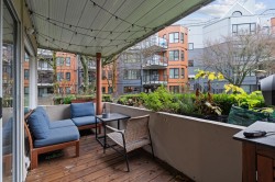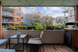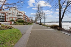 Experience refined waterfront living in a bright and well designed 2 bedroom and 2 bath condo. This home features an open concept living and dining area, a functional kitchen with ample storage, and new stainless steel appliances. The spacious primary bedroom includes a walk-in closet and 4 piece ensuite, while the second bedroom is perfect for a guest or home office. This 1268 sq. ft. home offers 2 patios, 2 lockers, and 1 parking. 2 pets allowed. Ideally located just steps from the Boardwalk, shops, entertainment, and transit. This home delivers a sophisticated lifestyle in one of the Quay's most desirable settings.