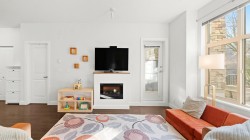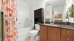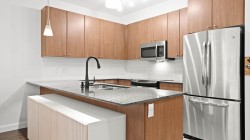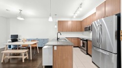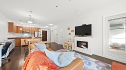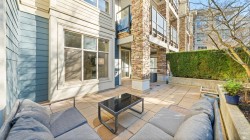 The Grove - Onni's masterplanned community - Victoria Hill!Surrounded by greenery & steps to Historic Queens Park! Efficient open concept layout 1 bed plus den (second bed) 859sf w/oversized 317sf ground floor patio facing courtyard/green space! Spacious kitchen feat granite counters, tons of cabinetry, stainless steel appliances & large breakfast bar.Spacious living/dining that do not feel like a 1 bed condo! Beautiful primary suite w/walk through closet & 4 pce ensuite. Large 13x6 den on opposite side of unit easily functions as 2nd bed. Fantastic complex amenities: gym, party room, pool table, library, theatre room.Just steps to skytrain, downtown new west, Douglas College.In the complex: sushi & pizza restaurants, coffee shop & convenient store! 1 parking & 1 storage incl. OH: Sun 12-2
