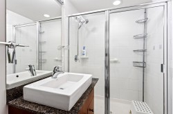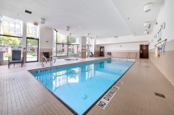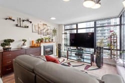 Best value in the building! Welcome to The POINT by Onni, located in the heart of Downtown New Westminster. This stunning unit boasts floor-to-ceiling windows, offering breathtaking city, water, and mountain views. The open-concept layout places the bedrooms on opposite sides for added privacy. Enjoy wood floors, sleek granite SS appliances, and a cozy fireplace in the living room. A spacious balcony, accessible from both the living room and the primary bedroom with an ensuite, extends your living space. Just steps from the SkyTrain, shops, and restaurants, or take advantage of the building's top-tier amenities, including an indoor pool, sauna, hot tub, rec room, media room, and fitness center. Bonus: Comes with two massive storage lockers! 2 Pets allowed