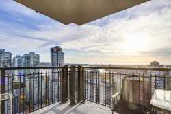 Welcome to the sub-penthouse level, 15th floor corner suite! This well-maintained, 2-bedroom, 2-bath residence offers sweeping Fraser River views from multiple vantage points. The intelligent 800 SF open plan includes a bonus work-from-home office nook. The bright suite features a spacious kitchen with granite counters, stainless steel appliances, and ample storage. Step onto your 61 SF balcony to enjoy the panorama of Downtown New West and the river. Enjoy excellent building amenities, including an onsite gym, a fantastic party room, and three secure boke rooms! Unbeatable location: steps to Douglas College, SkyTrain, the Quay, parks, and local dining. 1 parking and 1 locker. Rentals and pets allowed. Immediate possession available. Parking : P3 #119, Storage 111. Open House Sat/Sun 2-4pm
