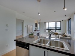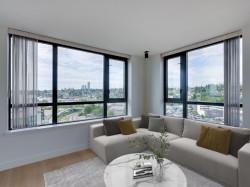 Bright and spacious 2 bed/2 bath corner home with water views at The Q, a concrete building in New West Quay. Recently repainted with new flooring, this home features a smart layout with separated bedrooms, open kitchen/living/dining, and a large balcony. The king-sized primary has double closets and a 4-piece ensuite. Granite counters and stainless appliances complete the kitchen. Well-managed strata with strong contingency. Amenities include gym, clubhouse, and 4th-level patio. 1 parking included. Pets and rentals allowed. Steps to SkyTrain, River Market, and the Quay Boardwalk. Move in Ready!