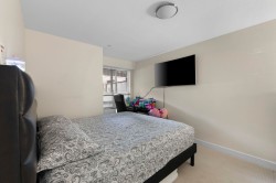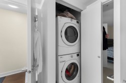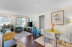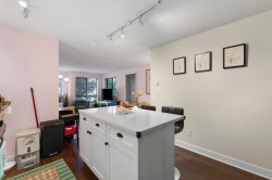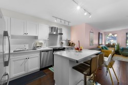 Welcome to Dominion by Ledingham McAllister in the heart of New Westminster. This bright and spacious 1 bed plus large den home offers flexible living, with a den big enough for a second bedroom or office. Enjoy a modern kitchen with quartz counters, stainless steel appliances, soft-close cabinetry, and a floating breakfast bar. The open layout flows to a covered patio perfect for relaxing. The primary bedroom features a walk-in closet, cheater ensuite, and views of the Royal Gardens. Includes parking, storage, and access to a secure bike room. Steps to SkyTrain, Douglas College, shops, and cafes. A beautiful home in an unbeatable location!