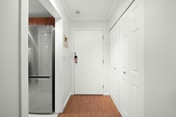 This beautifully and recently updated 620 sqr ft home features 1 bed, 1 bath condo at Regency Court in Uptown New West. Ideal for first-time buyers ready to stop renting and start building equity. The buildings proactive strata recent updates include: New Roof, repiping of the building, new parking lot membrane, new boiler system, and the exterior all repainted. The home itself has been Fully Renovated within the past year, this move-in ready home features stylish, modern finishes throughout. From the fresh paint and updated flooring to the sleek kitchen with contemporary cabinetry and appliances. Located just steps from shopping, restaurants, recreation, and all essential amenities. Don’t miss out – make Regency Court your new address today! Some photos are virtually staged.