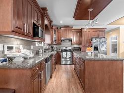 Welcome to this well-maintained home located in a friendly, family-oriented neighbourhood. Offering walkin level living, the main residence features three spacious bedrooms upstairs, three full bathrooms, a bright living room, a modern kitchen, a private family room, and access to a fully fenced backyard with a back patio—perfect for relaxing or entertaining. besides, you'll find a self-contained, two-bedroom legal suite with a separate walk-in entry and approved for home daycare use—a fantastic mortgage helper or investment opportunity. The main house is currently rented for $3,250/month plus 75% of utilities. Enjoy the comforts of radiant heating, gas fireplaces, and an attached tandem two-car garage. OPEN HOUSE at 2-4 on Sunday April 26, 2025