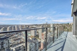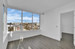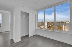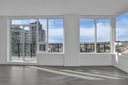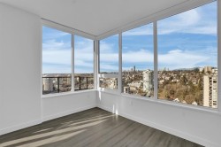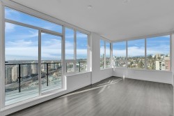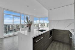 Welcome to Ovation, a striking 32-storey landmark in Downtown New Westminster. This 27th-floor unit offers 884 SF of luxury living with 2 bedrooms, 2 bathrooms, and breathtaking panoramic views of the Fraser River, cityscape, and bridge. The designer U-shaped kitchen features premium appliances, including a 36" Fisher & Paykel fridge and 30" Bosch cooking appliances, paired with quartz countertops. The elegant master ensuite boasts stylish tiling and a walk-in shower. Steps from the SkyTrain, shopping, and dining, Ovation also offers exclusive SKY CLUB amenities: a rooftop hot tub, mini-golf, gym, and private clubhouse. Book your showing today!