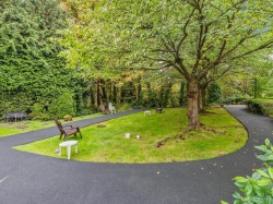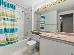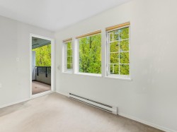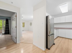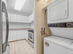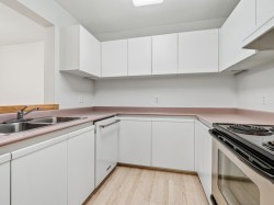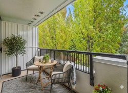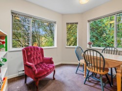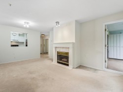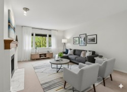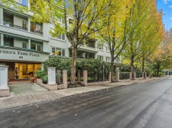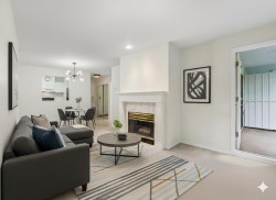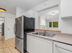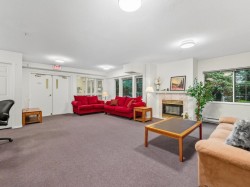 Welcome to our serene 55+ building. Laminate wood floors, meet you in the foyer & open up to the kitchen overlooking the dining/living room w/ a marble surround gas f/p. The covered deck off the living room looks out to the mature landscaping. The large primary bdrm also leads out to the balcony thru sliding glass doors that let natural light flood in. The full bathroom sits opposite the stacked in-suite laundry. The building includes a guest suite, ($45/night) a library, fitness centre, workshop & amenities room w/ a kitchen. Relax in a beautiful park-like setting at the back of the building w/ assigned garden boxes. Located steps from Glenbrooke Ravine Trail, across the st from Queen’s Park & a short walk to Cafee Mira, Victoria Sushi & L'Onore Pizza by Victoria Hill Park. 1 dog or cat.