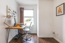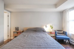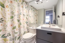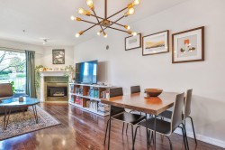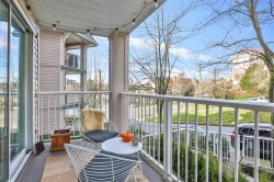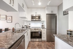 Queen's Terrace. Welcome to this beautifully updated 2 bedrm, 2 bath home offering comfort, convenience and exceptional value- an ideal opportunity for 1st. time buyers looking to step confidently into homeownership. This bright & inviting home features a functional open layout filled with natural light thanks to its west exposure. The living area is warm & welcoming with a cozy gas f/p.-perfect for relaxing evenings. The kitchen has been thoughtfully refreshed with updated cabinetry, lge. pantry, newer stove & fridge & plenty of storage & workspace for everyday living. Both baths. also tastefully updated w/newer toilets,vanities,updated lighting and refreshed floors- giving the home a clean,contemporary feel thruout. In-suite laundry too. The well maintained complex features a newer roof.