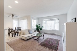 TOP FLOOR, CORNER 2 BED & 1.5 BATH updated suite with generous, private rooftop deck perfect for entertaining, BBQ, gardening or as an extension of your living space. Bright & spacious, 1100 sq ft featuring new carpets throughout, fresh paint, upgraded appliances & light fixtures, newer HW tank (2023), 2 upgraded smart thermostats, wood burning FP, ample storage & covered balcony off the dining area. Recent building upgrades include: Fire Alarm System upgrades, 2 EV charger parking stalls in parkade & Telus Fibre Optics soon to be installed. Located in very convenient Uptown neighbourhood steps away from Moody Park, Royal City Center, transit, banks, shopping, library, restaurants, cafes & more! 1 Parking & 1 Storage included. Rentals allowed! No dogs.