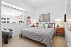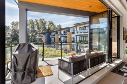 Welcome to this bright and spacious 1,043 sq. ft. loft-style home featuring dramatic 12-foot ceilings and a modern open-concept floor plan. Oversized windows flood the space with natural light, creating an airy and inviting atmosphere. The home offers 2 generously sized bedrooms and 2 full bathrooms, perfectly designed for comfort and functionality. A huge private balcony overlooks the serene courtyard with lush greenery and offers a peek-a-boo view of the Fraser River — ideal for relaxing. Enjoy direct courtyard access to the seawall, where you can stroll, jog, or cycle along the picturesque Fraser River trail. Nestled in a quiet, family-friendly neighborhood, this unique residence combines urban living with natural beauty. Perfect for those who value style, space, and tranquility.