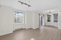 Welcome to this beautifully updated duplex-style townhouse offering comfort, privacy, and modern living. This 2-bedroom, 3-bathroom home features brand-new flooring throughout and a functional open-concept main living area ideal for everyday living and entertaining. Upstairs offers two generously sized bedrooms, each with its own bathroom, providing excellent separation and convenience. A rare double side-by-side garage offers ample parking and storage. Located in a well-maintained complex with easy access to parks, schools, shopping, and transit. An excellent opportunity for first-time buyers, families, or investors.