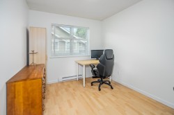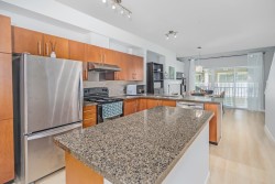 Welcome to this inviting 3-bed, 2-bath townhome, perfect for a growing family! Enjoy an open-concept design with energy-efficient Mysa thermostats and laminate flooring throughout. The spacious kitchen features granite countertops, a large island, and updated stainless steel appliances, including a fridge, dishwasher, and range hood. Step outside to a private fenced yard and covered deck for year-round enjoyment. Upstairs, find 3 generously sized bedrooms and 2 fully re-modelled bathrooms. The ground level offers a 1-car garage with a new opener and versatile den—perfect for a home office or gym. Conveniently located near schools, transit, the community centre, and more. Open House: 11/29 Saturday 12-2pm.