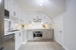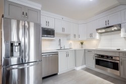 This delightful & truly unique Home – proudly holding Heritage Status w/ the City of New Westminster – offers Strata living & is professionally managed for comfortable, worry-free ownership. Also includes 2 secure underground parking stalls & 1 storage locker. Ideally located in the lively Uptown district, this home is w/in walking distance to amenities, shopping, transit, & schools. The residence has been fully restored inside & out & thoughtfully reconfigured into a Duplex – featuring 2 Bedrooms & 2 Baths on the upper level. Bright & airy open-concept kitchen w/ dining and living room layout showcases modern updates including S/S appliances & Quartz countertops. Extend your living space onto the generous private porch, perfect for entertaining friends & families.