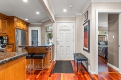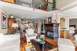 Waterfront living at its best! This fully remodelled 2 level, 1400+ sq ft home offers 2 bedrooms plus a den and an upper level family room. Features include Brazilian cherry hardwood floors on the main, a custom kitchen, gas fireplace in the living room (included in strata fees) and a primary bedroom with walk in closet and five piece ensuite. Enjoy fabulous water views from a large balcony off the living room or from the rooftop deck. 2 pets allowed. 1 parking stall and visitor parking. Common room with fitness equipment, pool table and sauna. Steps to cafes, restaurants, shops, River Market, Pier Park, Skytrain & downtown New West.