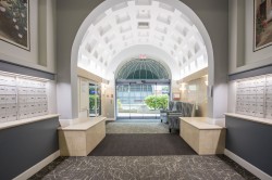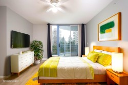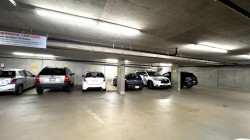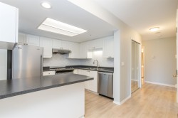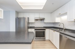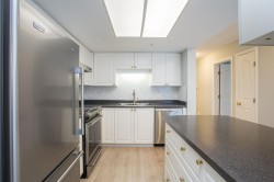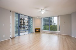 Stirling Place by Bosa! This bright 2 bed, 2 full bath, 2 balcony home has an updated kitchen with newer stainless steel appliances and newer laminate flooring. Large Primary has ensuite, and both bedrooms have sliding glass doors out a balcony. Spacious living room has a cozy gas fireplace (incl in maint fee!) and double sliding doors opening to another balcony. Dining room is open to the kitchen for easy entertaining. 1 large EV ready parking and full size secure locker. Exercise room and club room in lobby, bike room and workshop in garage. Piping and elevators updated. Solid concrete highrise in the heart of Uptown – across from Royal Centre Mall & Save On Foods, with all the shops and eats along Sixth St. Moody Park, Century House, schools and library close by.