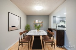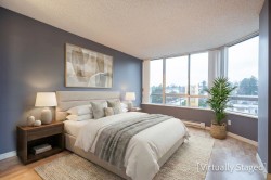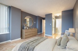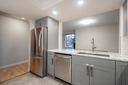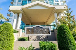 The Perfect Condo Now Available at Vista Royale! Priced to Sell in this competitive condo market! Spacious and Bright 1170 sq ft 2 bedroom & 2 bathroom suite facing mostly North up the Hill in New West. This home has been beautifully updated with New Kitchen cabinets/counters & S/S Appliances. Great for entertaining with access and views into the Dining and Living area. New Recessed lighting. Updated bathrooms with new vanities, new toilets, new counters, new tiling, mirrors and lighting. Laminate flooring thru out most of this spacious suite. This Home is Move in READY!! Large windows to enjoy the views of the City. Steps to schools, shops, restaurants, parks, transit and skytrain from this perfect location. Strata has updated Plumbing, elevators, add EV Charging.