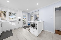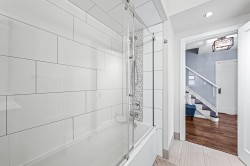 Impeccably renovated, this refined 3 bedroom, 1.5 bath residence delivers elevated living with an exceptional level of craftsmanship and care. Thoughtfully reimagined from the inside out, the home combines timeless design with extensive upgrades rarely found at this level. Significant infrastructure improvements include new perimeter drainage, new sump, new electrical and plumbing, new wall and ceiling insulation, high-efficiency Bosch heat pump; the list goes on and on. The interior showcases refinished hardwood floors, crown moulding, new window coverings. Outdoors, the fully fenced rear yard provides a private retreat complete with fabulous deck. A double garage with loft and convenient lane access adds versatility and valuable additional space.
